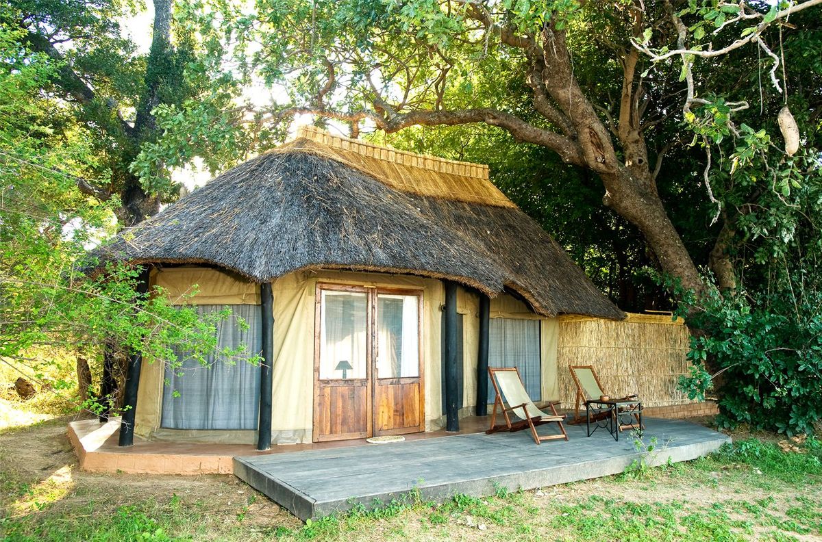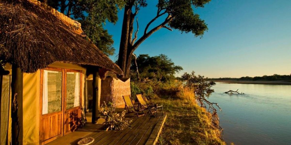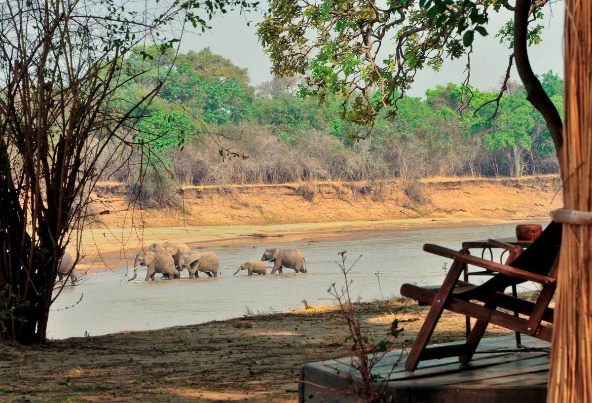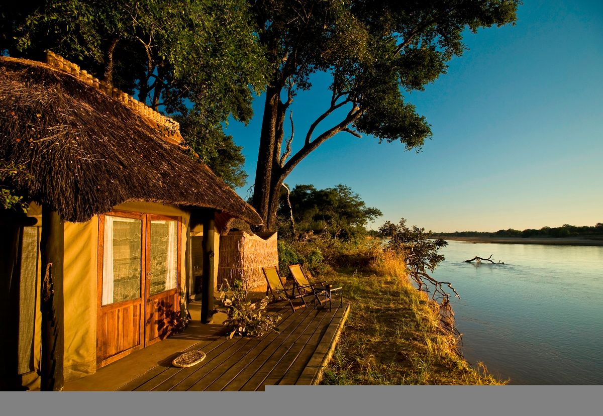 Mchenja occupies a stunning setting beneath a magnificent grove of ancient ebony trees on the banks of the peaceful Luangwa River in Zambia.