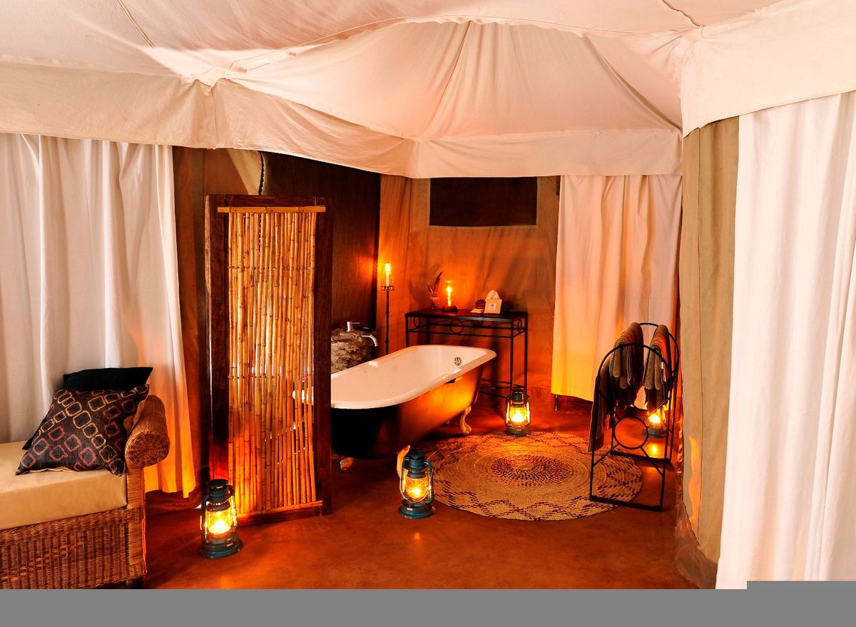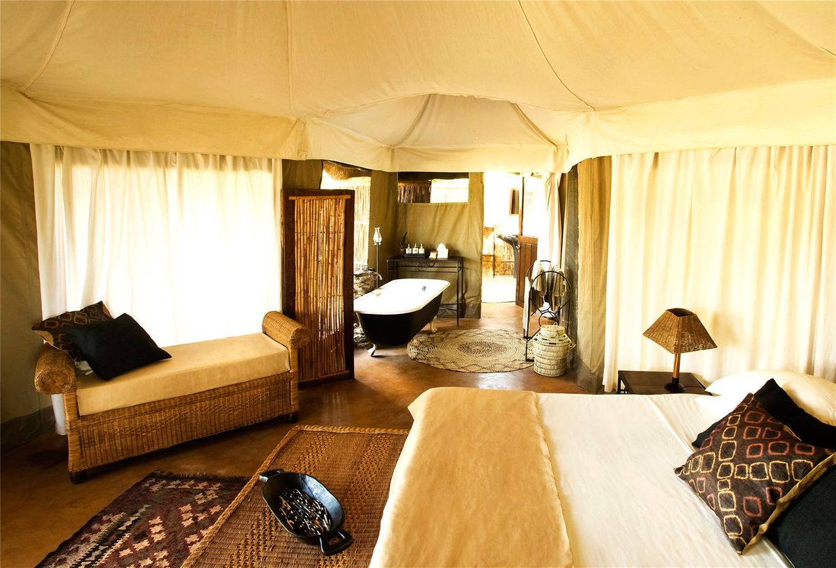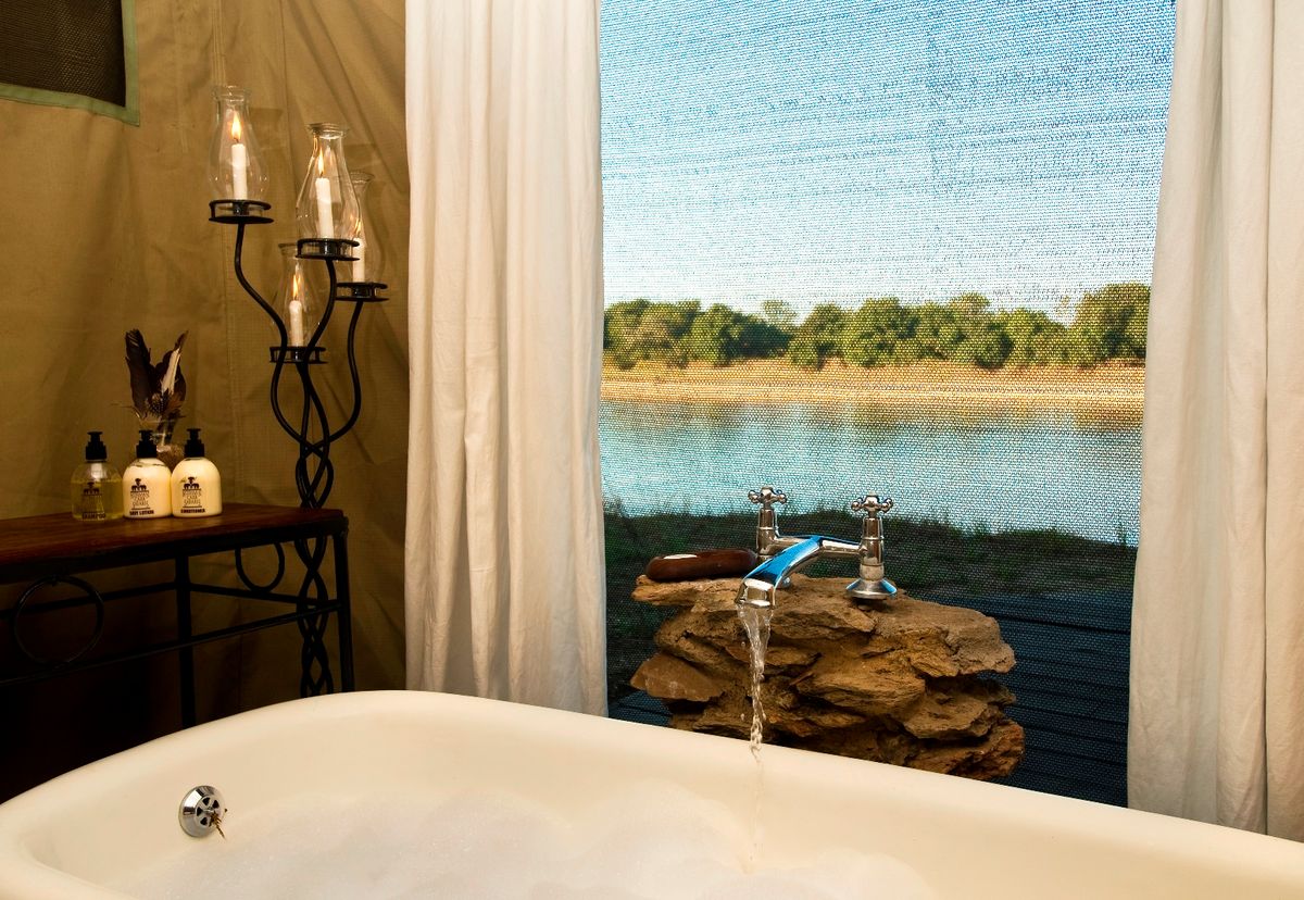 The camp comprises four stylishly designed tents each under its own cooling thatched roof and with a private deck in front overlooking the Luangwa River. The tents have indoor baths with a secluded outside shower room. There is a small pool alongside the bar within the thatched main chitenje (main lounge/dining area), allowing guests to seek cool refuge after their morning's safari activities. As a luxury bush camp, Mchenja is the perfect destination to complete a guided walking safari that has combined stays at a number of camps, allowing for a great exploration of the area. Alternatively, those guests seeking a little more comfort and pampering may choose to indulge in a longer stay here.