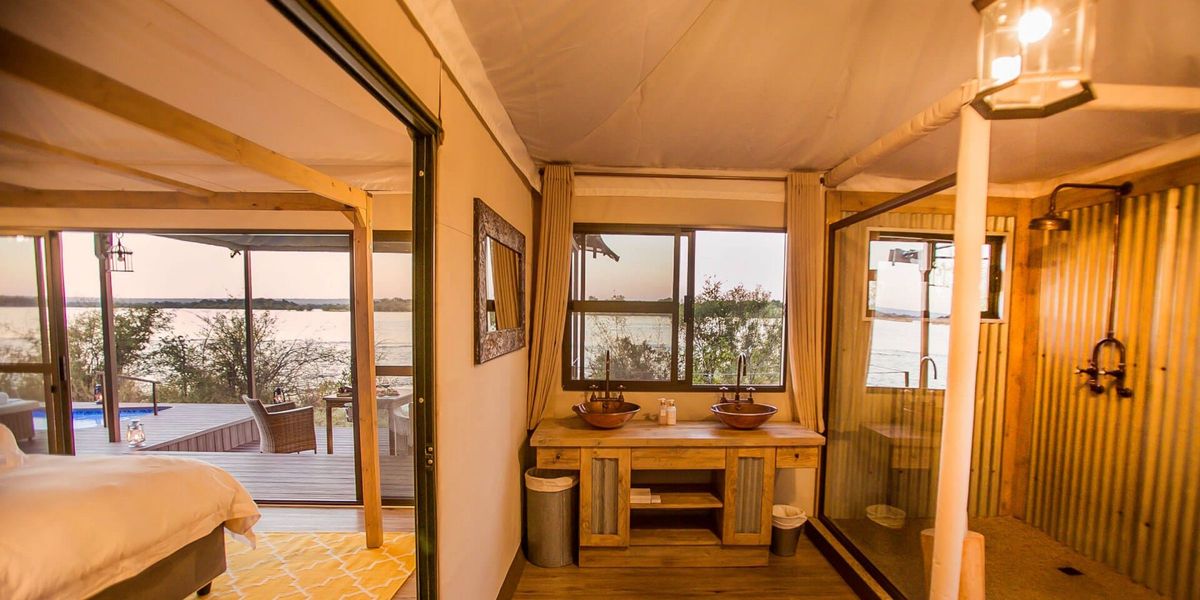 On the banks of the Zambezi River, the Old Drift Lodge is a magnificent sanctuary offering fourteen tented chalets. The main lodge area has 360-degree views, north facing onto the Zambezi & south facing onto a water hole. Enjoy dining under the shaded roof of the main lounge or out on the deck overlooking the river. The sunken central fireplace is a lovely gathering place to share travel tales and meet new travel friends.