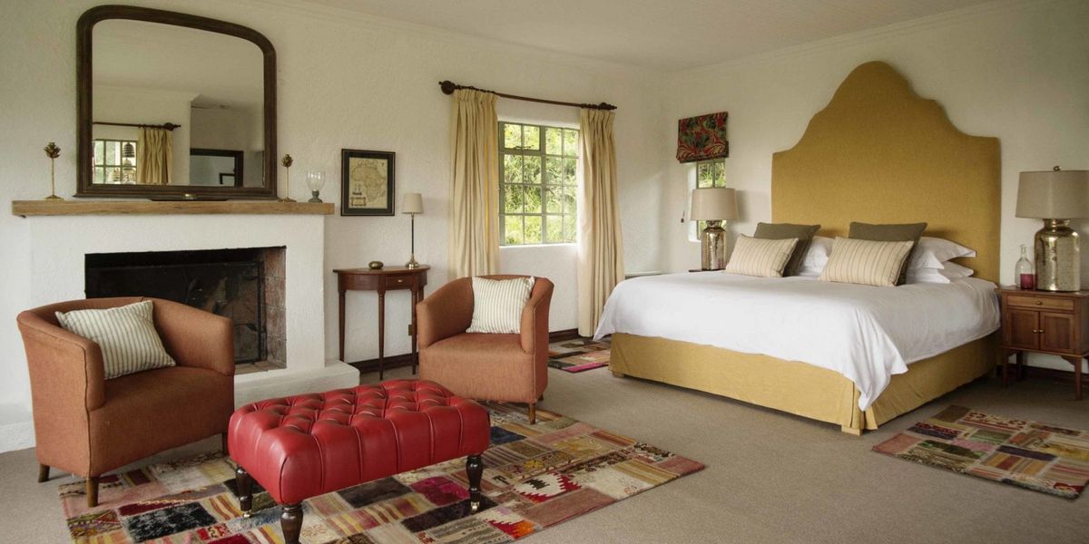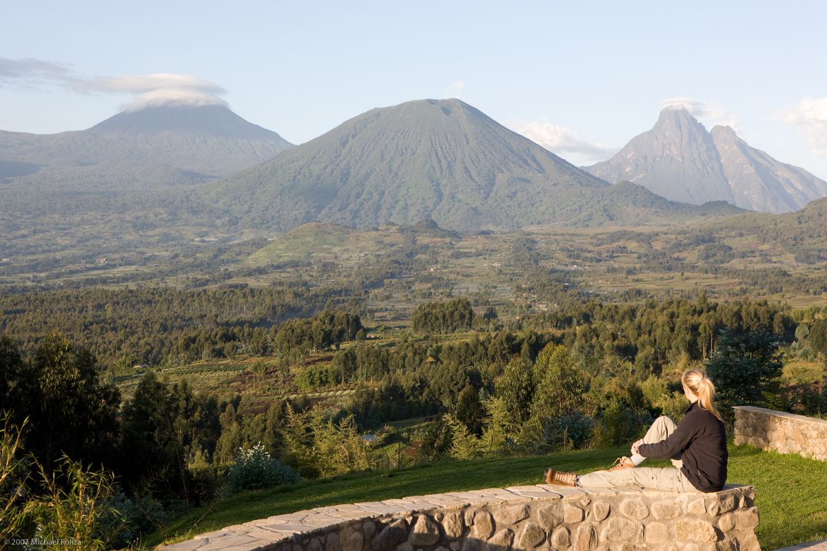 Sabyinyo Silverback Lodge situated in the foothills of the mighty Virungas, affords wonderful views of the volcanoes and the surrounding countryside. It has been beautifully constructed and appointed and the lodge is the perfect base from which to explore this unique and fascinating corner of Africa. The lodge comprises six cottages, two suites and one family suite. All are stone buildings with Rwandese terracotta tile roofs, and feature large sitting areas, fireplaces, stylish en-suite bathrooms with a dressing room and a shaded veranda. The main area has a sitting room, dining room, library, and a responsible tourism awareness room. Three large fireplaces provide warmth and all rooms are finished with a polished wooden floor. Two patio areas afford wonderful and dramatic views to the Virunga Volcanoes and the surrounding lowland farmland.