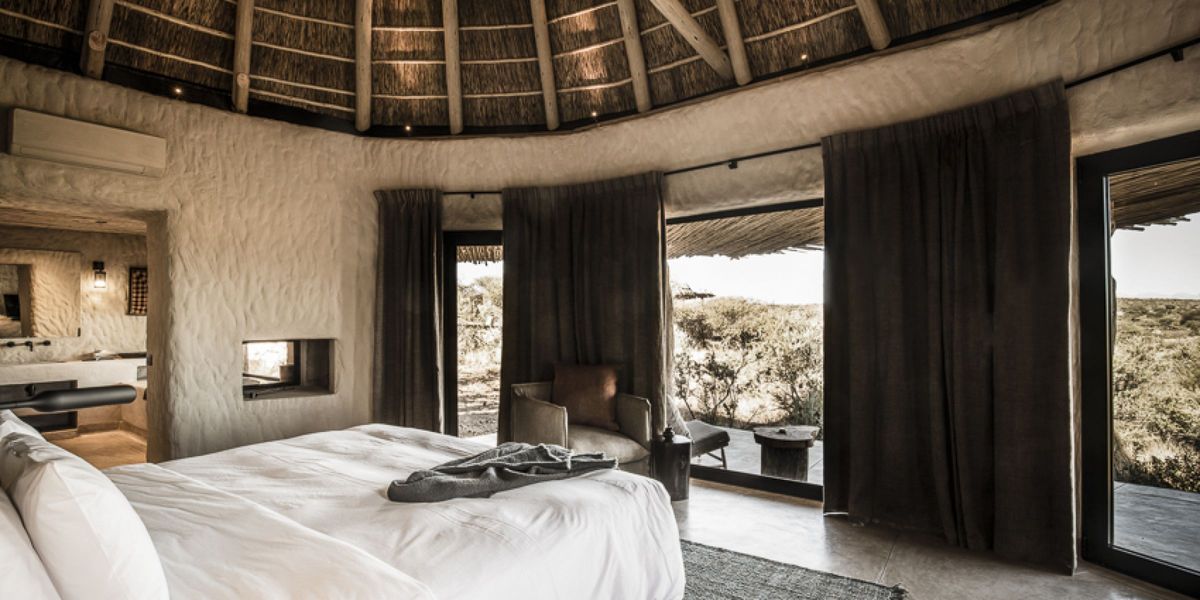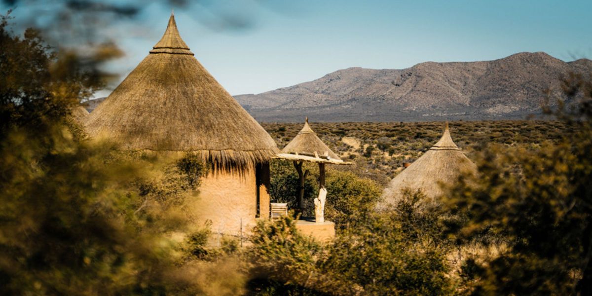 Perched on top of a group of boulders, in the middle of the desert, ten luxury huts offer a stay that is at one with the surroundings. The huts are built in traditional Namibian style, with rounded corners and hand finished thatched roofs. The design is simple und understated; the deep, warm colours are evocative of the earth, sand and natural environment. The interior decoration is composed of rare objects and precious antiques from African culture. These huts are spacious and boast a private terrace with magnificent views overlooking the nearby ‘dam’ (small lake) and the distant hills of the Khomas Hochland plateau. All huts offer air conditioning, a bathroom with separate toilet, walk in shower, double sink and a large bathtub with a view.