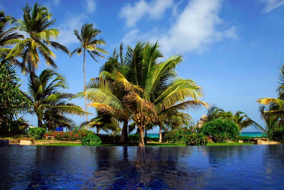 The Palms is a small, luxurious option on the mainland of Zanzibar. The rooms are gorgeous and feel like small homes. This property is refined. The swimming pool and private beach access are quiet and serene.